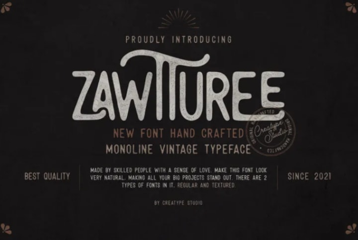 Bored with the typical comic carnival font and too many decorations? Perhaps you can minimize the appearance of the design so that it is more casual but still luxurious and unique. One way is to choose this font from Zawtturee Monoline Vintage, to fill your design space.