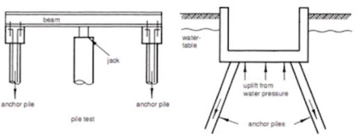 4. Anchor or tension or uplift piles: Anchor piles are used to give stability against horizontal forces.