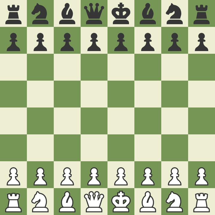 There are eight ranks (side-side) and eight files (up-down) for a total of sixty-four squares on the board. The starting position looks like this: