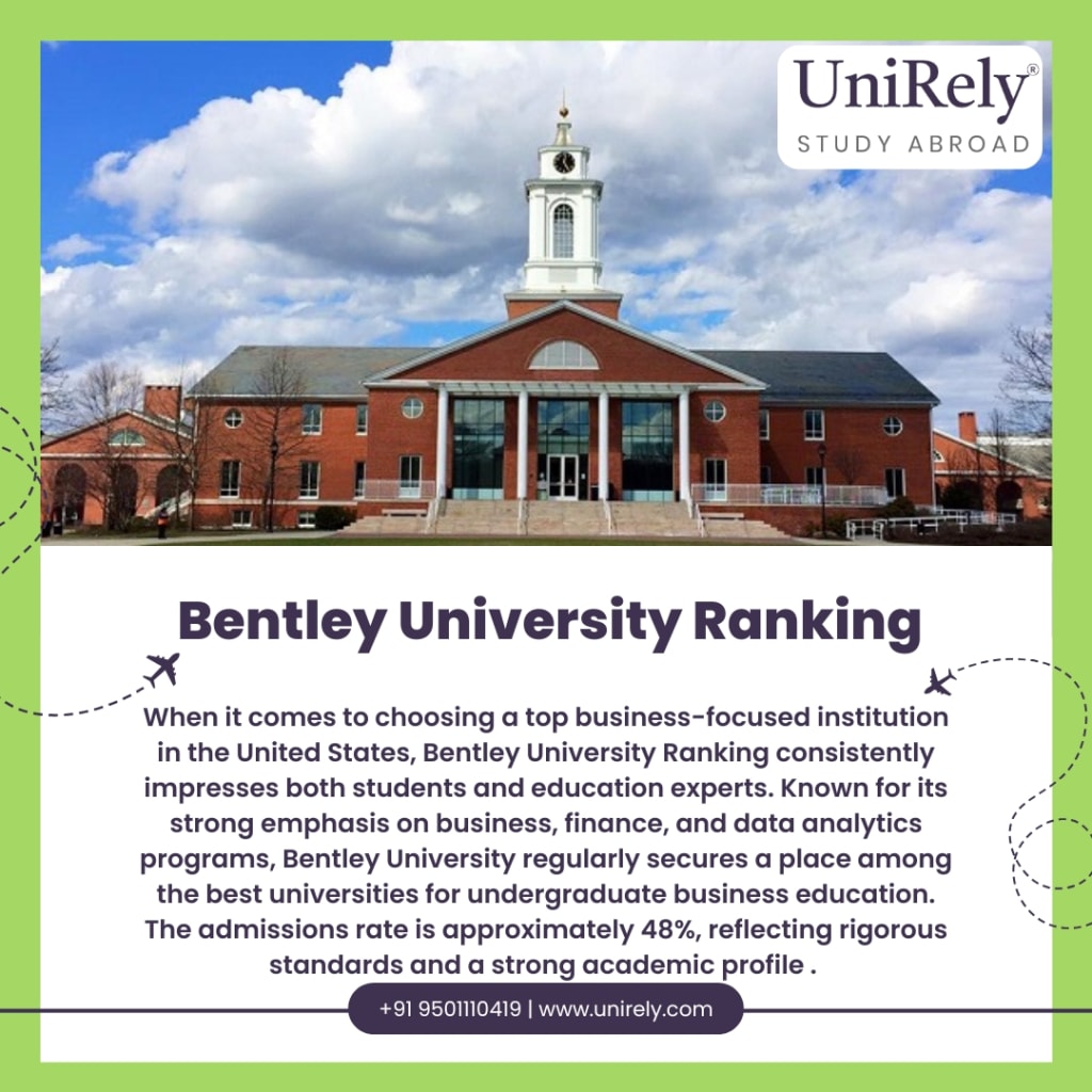 When it comes to choosing a top business-focused institution in the United States, Bentley University Ranking consistently impresses both students and education experts. Known for its strong emphasis on business, finance, and data analytics programs, Bentley University regularly secures a place among the best universities for undergraduate business education. The admissions rate is approximately 48%, reflecting rigorous standards and a strong academic profile . While explicit data on tuition and fees isn’t detailed on the Unirely page, prospective students should expect competitive costs typical of private universities, with robust scholarship opportunities available for both domestic and international applicants . For anyone researching Bentley University Ranking, this resource offers valuable insight into admission chances, selectivity, and award potential. Explore it for strategic planning and to strengthen your application with scholarship considerations.