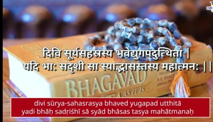 which means- If a thousand suns were to blaze forth together in the sky they would not match the splendour of the great Lord Krishna!