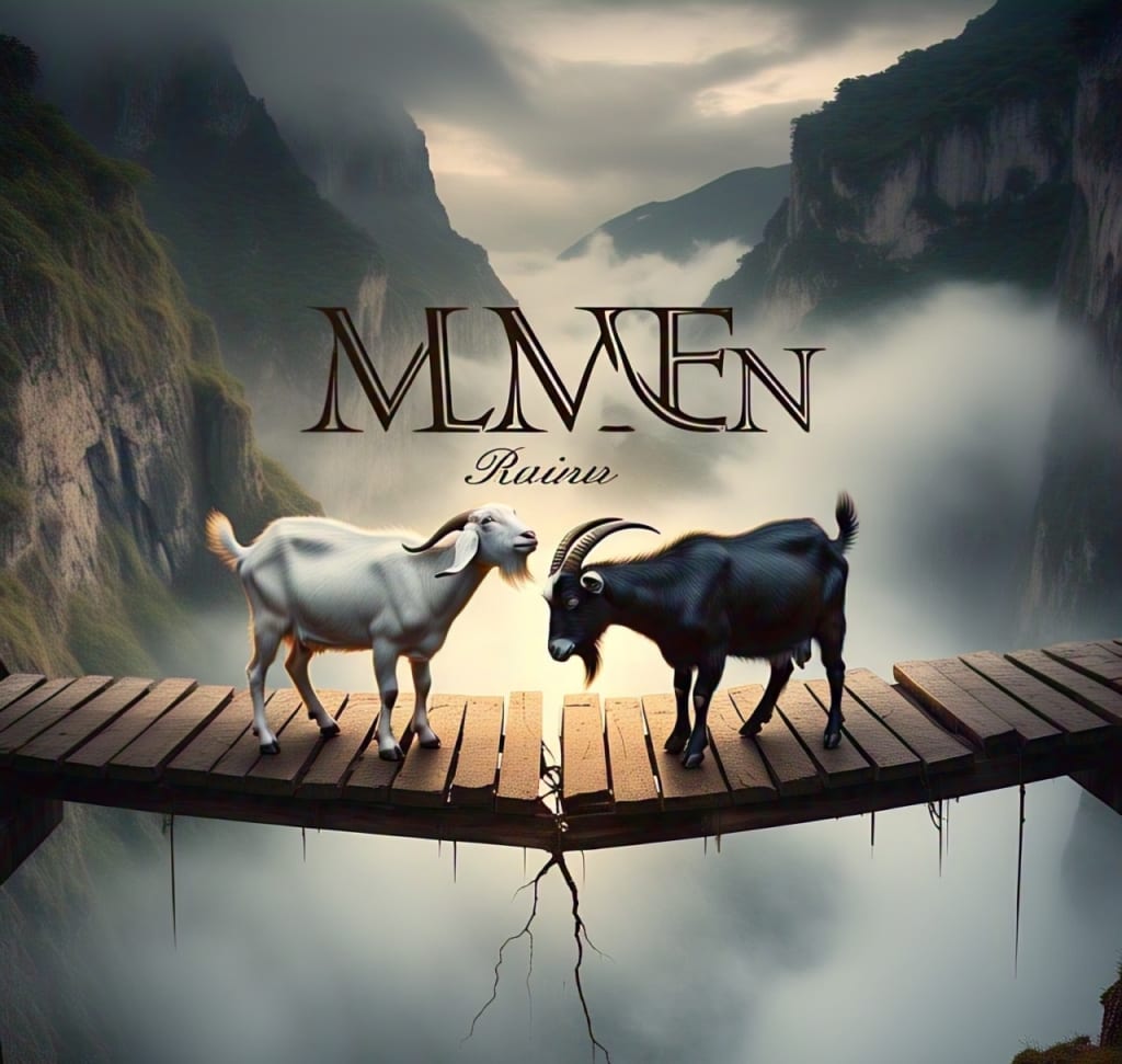 Long ago, nestled in the heart of the great green mountains, two villages sat on opposite sides of a deep valley. One village was known for its bright, snowy landscapes where the white goats grazed freely. The other, shadowed by towering trees and jagged rocks, was home to black goats known for their strength and endurance.