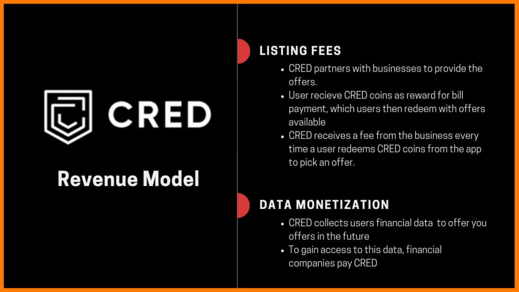 Cred's revenue model primarily revolves around forging strategic partnerships with various financial institutions, credit card companies, and other entities in the financial ecosystem. By collaborating with these partners, Cred creates a win-win situation, benefitting both the users and the participating institutions.