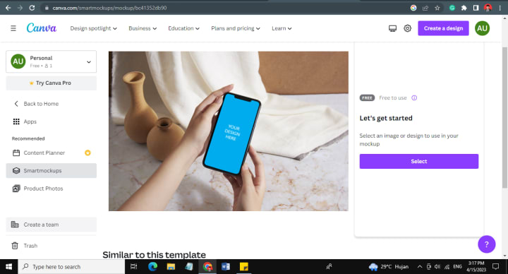 Once you do, you will be able to find various mockup templates available. You can keep scrolling down to find the one that best suits your Smartmockups Canva design.