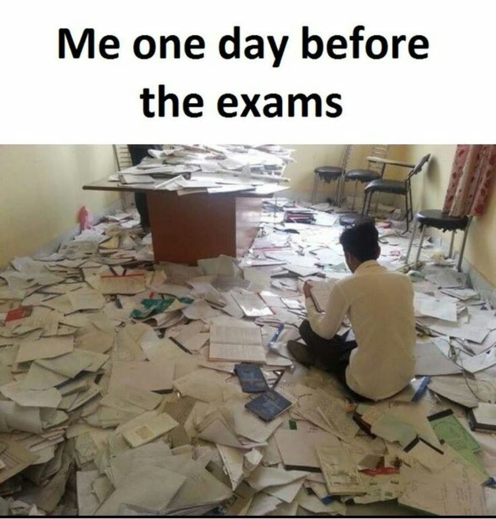 And I'm not even kidding, the school's president holds a 30 minutes speech. And let me ask you a question? Two weeks before the exam, everybody in your school started to tag people in exam posts? Because that is what happened to me.