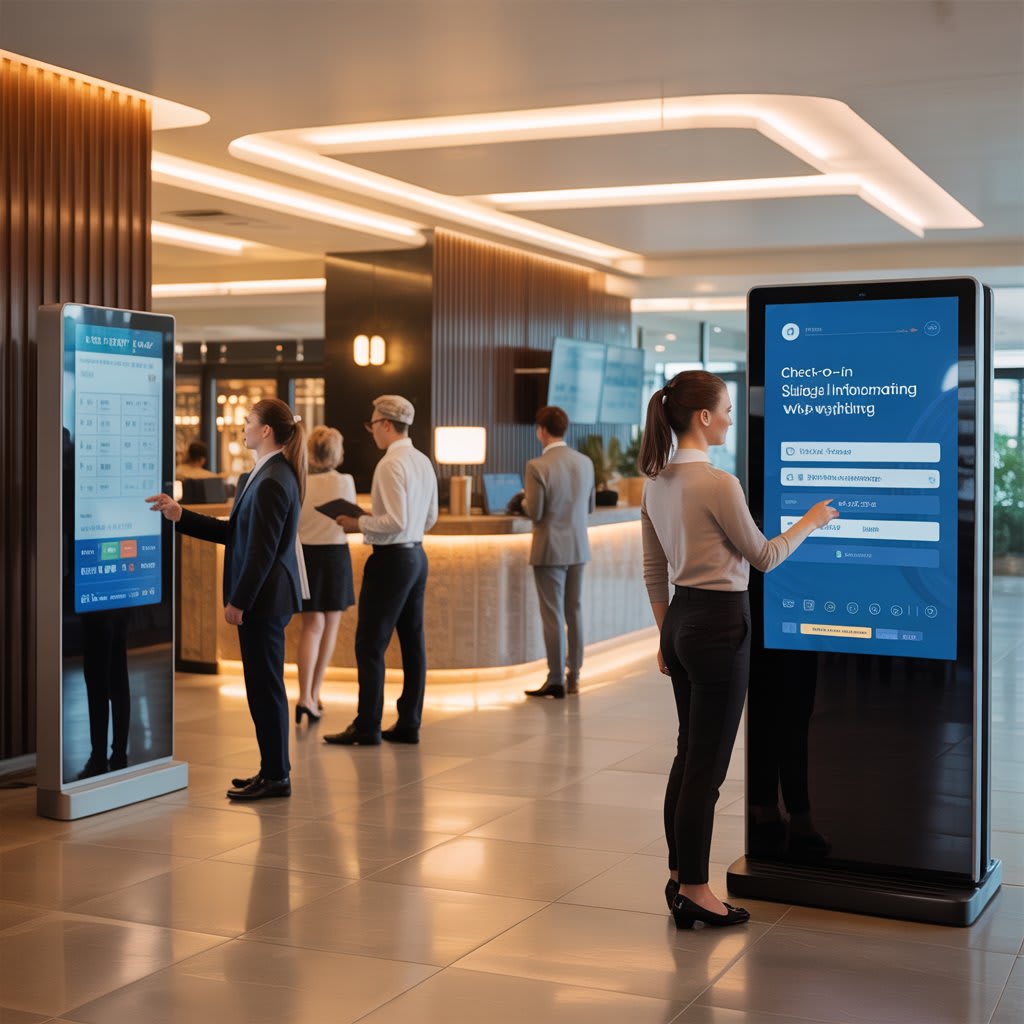 - Hotel lobbies: Welcome messages, check-in queues, local attractions