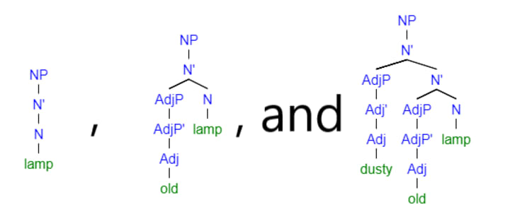 Now that we have the basics, we can move to yet more interesting stuff and explore how the X-bar framework allows for enough flexibility to represent any phrase in any language. First of all,