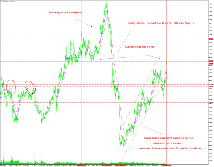 Key events that have affected Netflix's stock price over the past two and a half years.