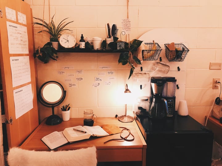 If you need inspiration, head to Pinterest or Instagram. Figure out what you like & brainstorm how you will style your dorm to fit your specific needs & wants.