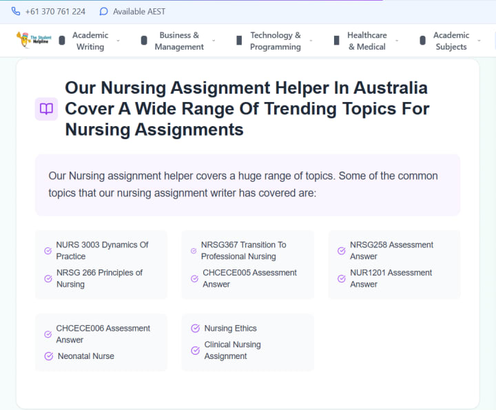 The Student Helpline is a leading academic assistance platform that specializes in providing high-quality Nursing Assignment Help. Here’s why it stands out: