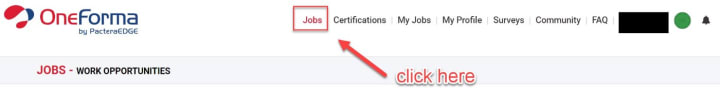 Once you clear the certification, you will see the Oneforma Dashboard. Click on the “Jobs” tab and you will be presented with a list of jobs available in your area. Select anyone you are interested in and sign up for it.