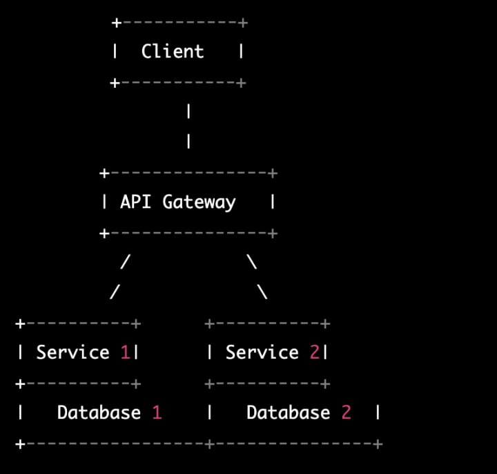 In this architecture, the client communicates with the API Gateway, which acts as a single entry point to the system.