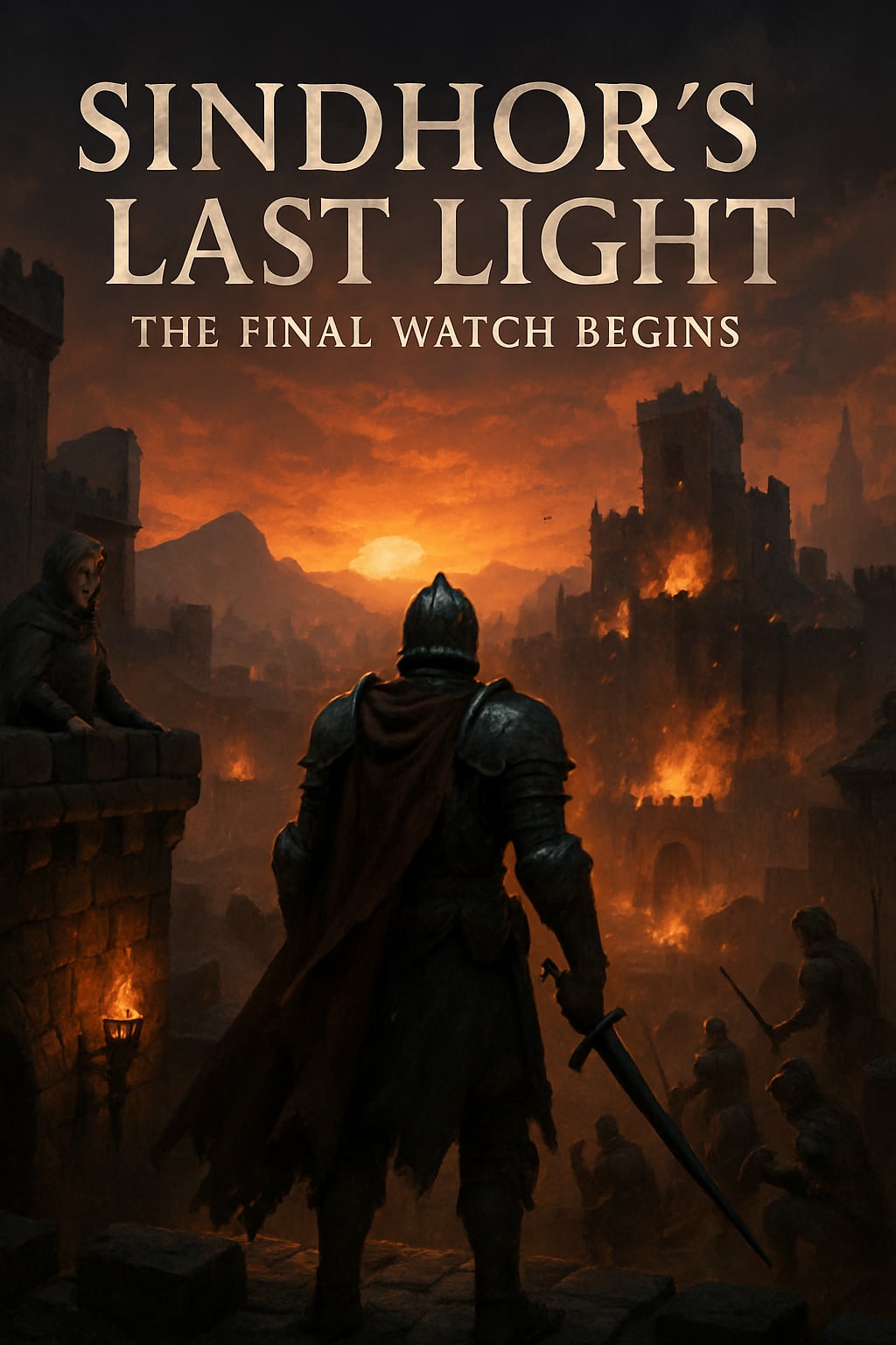 Captain Alen Varos stood atop the last intact battlement of Sindhor’s inner wall, his armor scorched and dented from days of relentless siege. Below him, the remnants of the city’s defenders made their final preparations. Barely two hundred souls remained — soldiers, mages, scouts, and common folk too stubborn or too loyal to flee.
