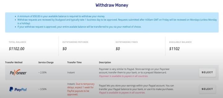 You can earn up to $7,500 monthly, according to StudyPool. It pays its tutors through Payoneer, WesternUnion, PayPal and TransferWise.