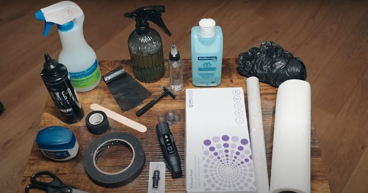 How to create a hygienic tattoo setup using various products and I'll also demonstrate the proper way to pack the tattoo machine. First I wash my hands and then put on gloves. It's important to note that whenever an unpackaged product is handled, new gloves must be used afterward.