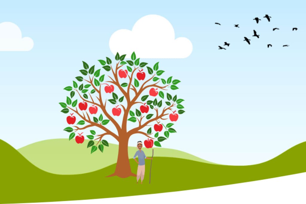 Once upon a time, there lived a farmer in a village, beside a forest. He had a big garden that had an old apple tree and other plants, trees and beautiful flowers. When the farmer was a little boy, he spent much of his time playing with the apple tree. Those days, the apple tree had given the choicest of apples to him. However, as time passed, the apple tree became old and stopped bearing fruits.