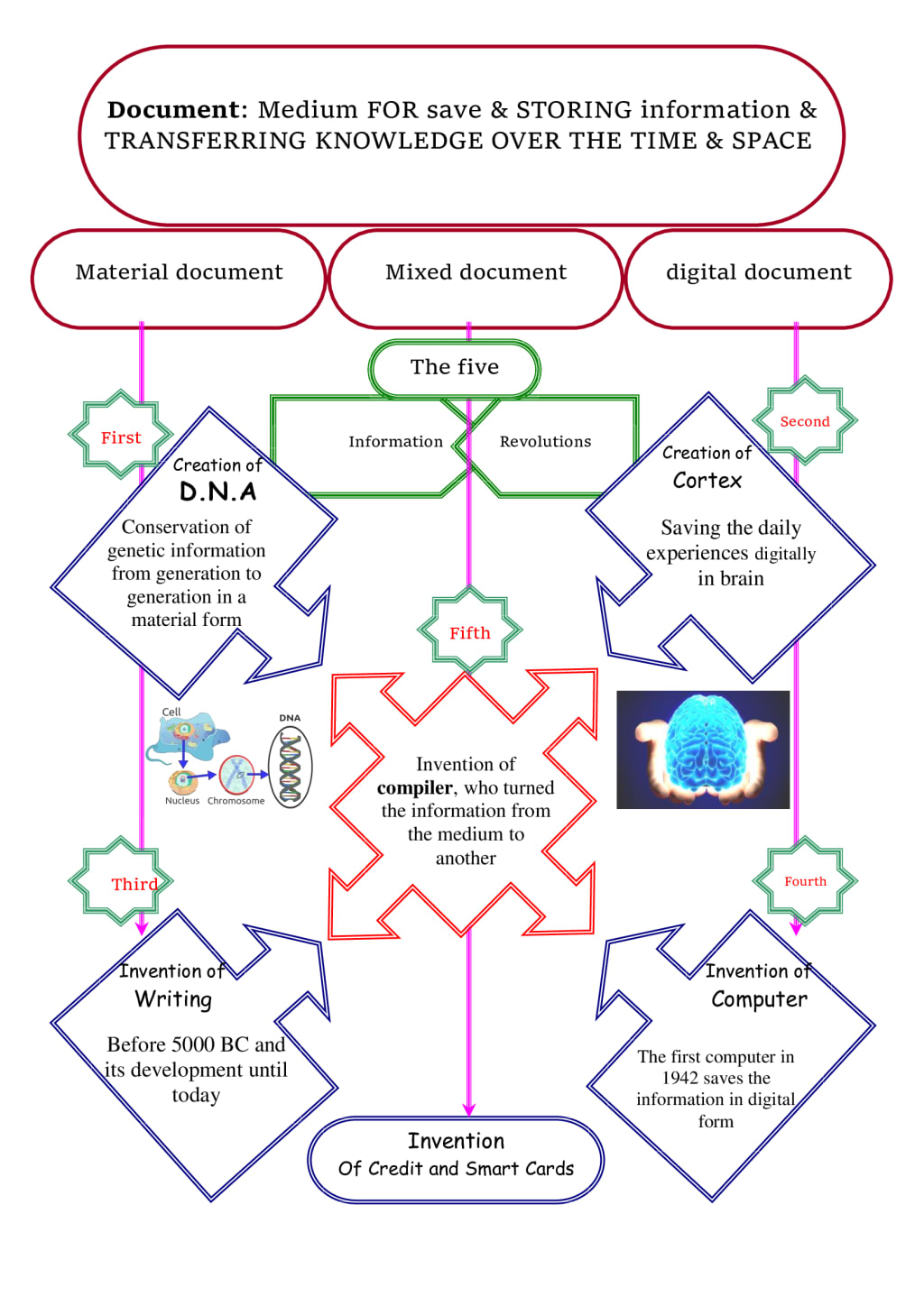 The first type is the physical document, in which information is stored in a physical form that occupies space and can be seen and transferred, such as (nucleic acids - paper - leather).