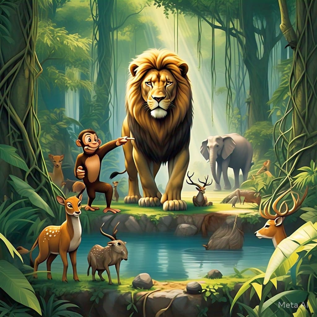 And so, the lion and the monkey—once so different—became the best of friends. One with strength, the other with wit. Together, they ruled the jungle not with fear, but with fairness.