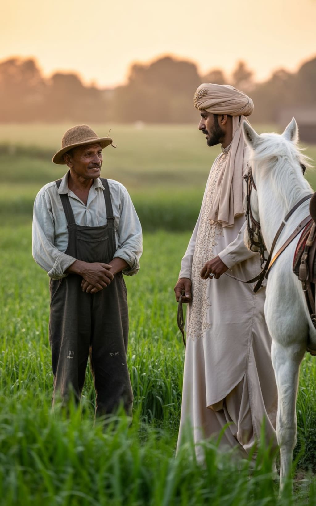 The Nawab smiled and spurred his horse. After meeting the farmer, he had learned a great deal that day. This man, living his daily life in the fields, was not just a farmer, but a treasure trove of wisdom and understanding. The Nawab returned to his palace with new insights, a deep respect for the farmer in his heart.