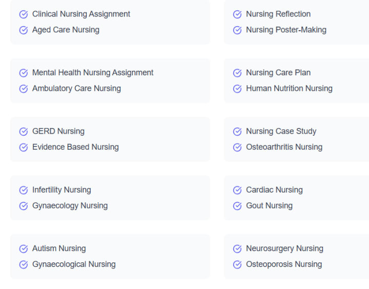 Types of Nursing Assignments Supported