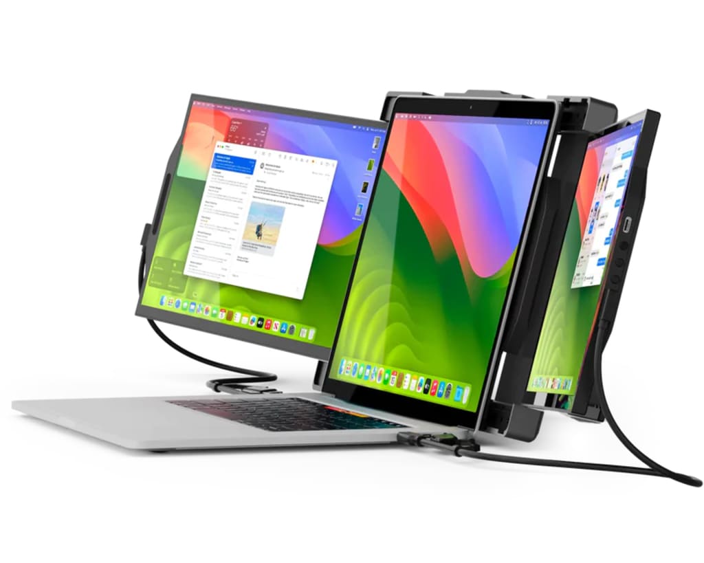 Introducing the new Trio and Trio Max, our upgraded 20% thinner and 1 lb lighter, all-in-one triple-screen, plug-and-play monitors where you can go. Easy to use as a ultimate solution for the working professionals, gamers, stock traders, entrepreneurs, coders, and more - always on the go.
