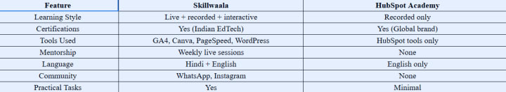 Head-to-Head Comparison: Skillwaala vs HubSpot Academy
