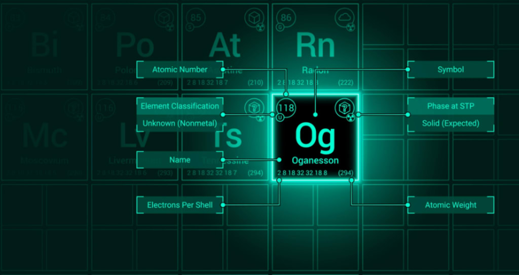However, we have synthesized far more powerful elements than plutonium. Ooganesson (chemical symbol Og) is the heaviest element ever synthesized. It has an atomic mass of 294 due to its 118 protons and 176 neutrons. It was found in 2002 at the Joint Institute for Nuclear Research (JINR) in Dubna, near Moscow, and named after the Russian-Armenian nuclear scientist Yuri Oganessian, who discovered some of the periodic table's heaviest elements.