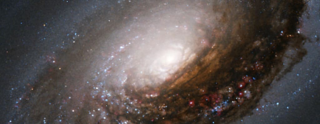 Charles Messier included M64 in his list of things that are prone to be mistaken for comets. With better telescopes, scientists began to note how dusty the galaxy's nucleus seems in comparison to those of other neighboring galaxies, which is especially noticeable on one half due to our viewpoint. Even stranger, the majority of its stars move around the galactic center in the opposite direction as the disk's outer, hydrogen-rich disk.