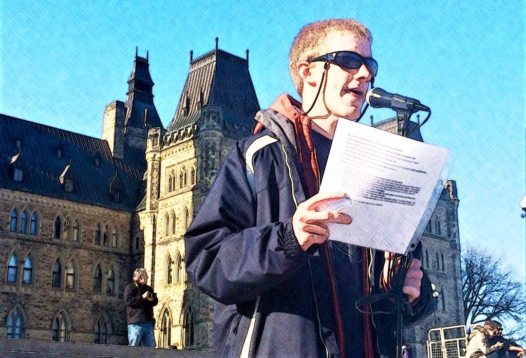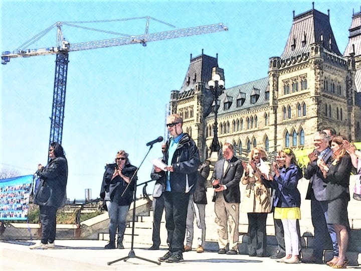 When I was asked to speak today, I thought, I can do this as long as I have a chance to practise. And then I should be okay. So we came here to Parliament Hill every week for the past month. I stood right here with a fake microphone, and I practised.