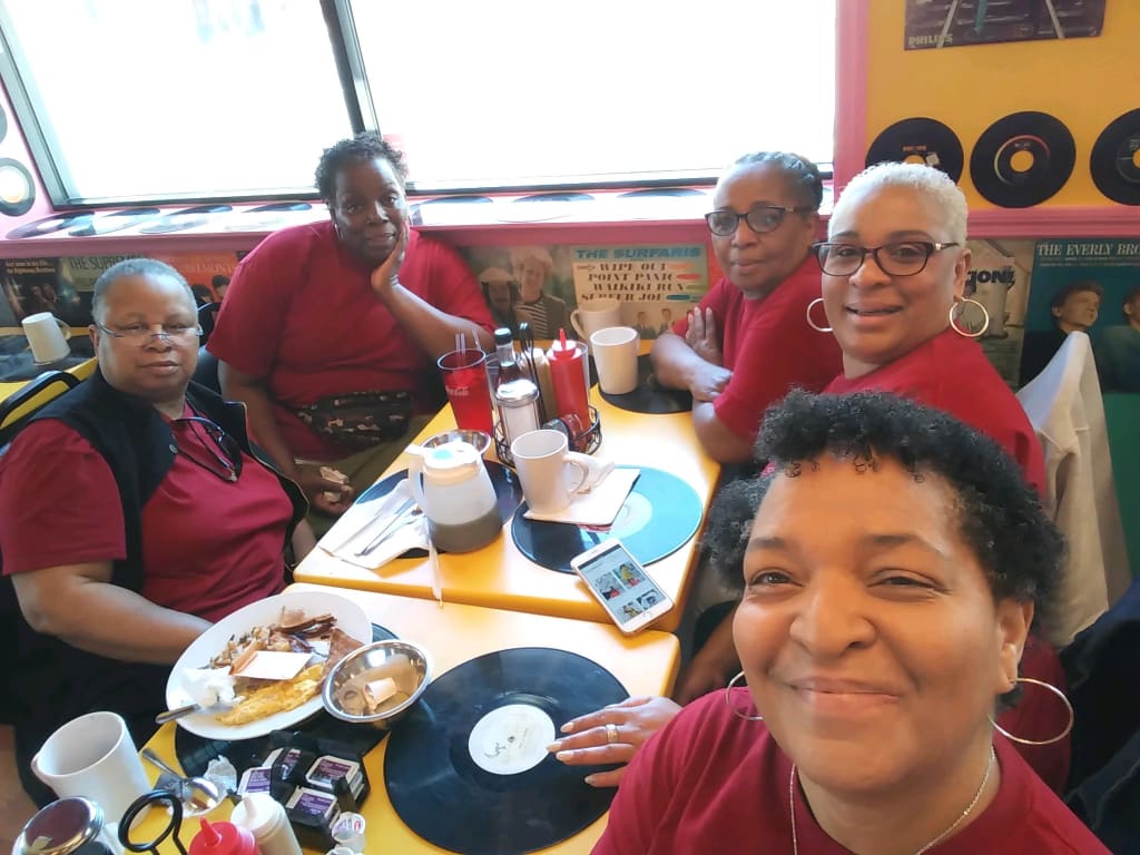 At the table on the right side are my nieces Carlita and Stayce and their mom, my oldest sister Cherry. On the left side me and my sister Clara.