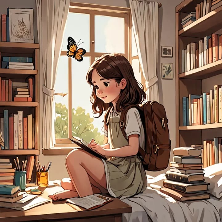 Before setting out, she loaded her backpack with her favorite storybooks, a sketchpad, and a small jar of honey, her secret bait for butterflies.