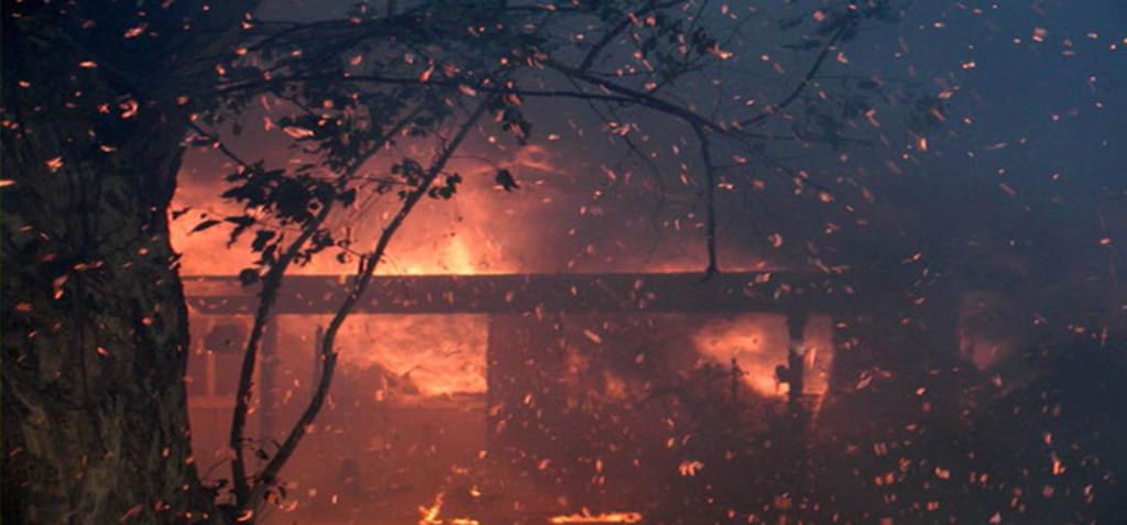 You see, the house we lived in was old fixer upper. The insulation was newspaper, which is why the fire caught so quickly. Our hen, Hanna, was the reason we were able to eat breakfast thanks to the eggs. Most of the other chickens were taken by coyotes or snakes and we could never catch them, which is why my dad was not inside at the time of the fire.