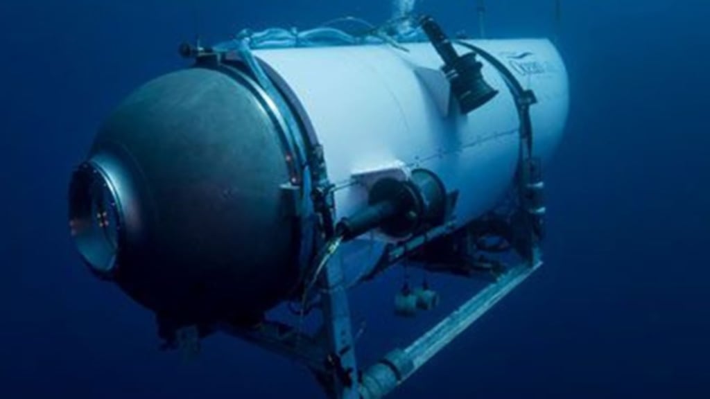frenzied hunt around the Titanic for the missing submersible with five people aboard is audible underwater.