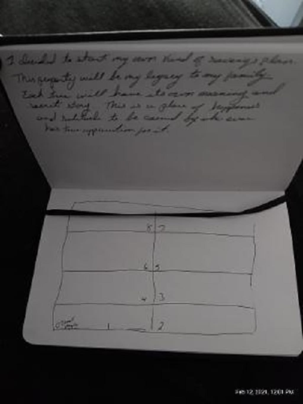I know you are the only one that truly appreciated my solitude property as much as I do, so it is yours. Mr. Lewis will take care of all the paperwork. As you know every month we planted a different tree around the property. The book maps each one of them out. What you don't know is that I also buried little surprises by each one. So you have your own personal treasure hunt. When you have collected them you can do whatever you want with the prize. Your Grandmother knows you get the land but that is all. No one needs to know more if you don't want them too.