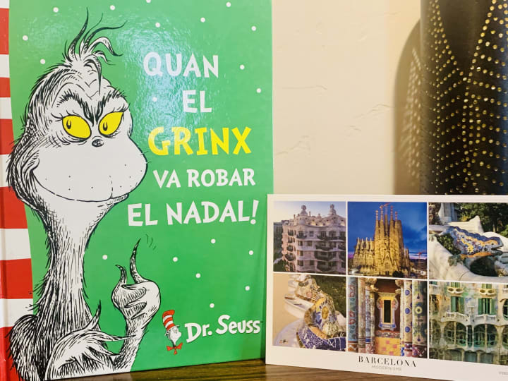 The next morning I went to a coffee shop and was sitting outside when I noticed a bookshop across the street. Perfect! I headed straight for the children's section and began to look at the books. I usually get a book that I recognize and remember reading as a child. I saw the Dr. Seuss books and thought about the Cat in the Hat, but decided on How the Grinch Stole Christmas. The story reminded me of the beautiful holiday lights I saw in Barcelona and it was a wonderful souvenir from my weekend in Spain.