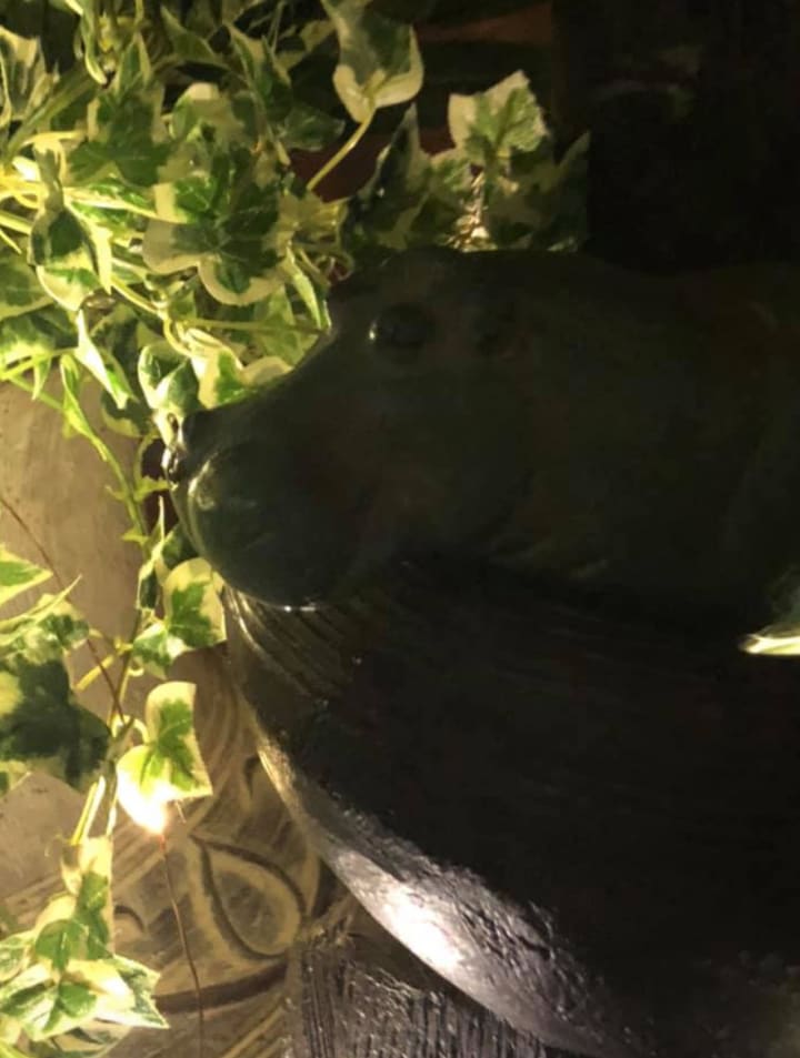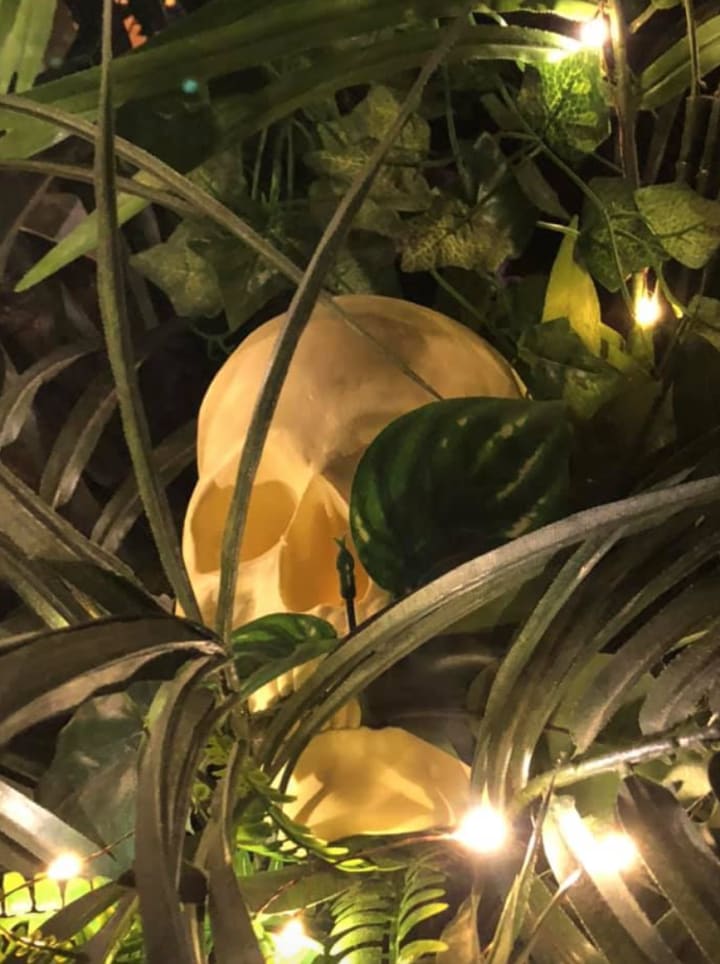 Sometimes the kids bring their own touches to Babylon. This is Ophelia, the skull. She likes to hide among the ferns.