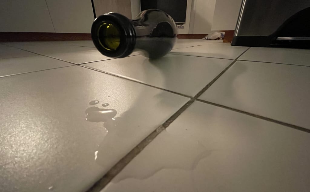 I pick up his head and gag from the odor of his reeking breath: chicken, beer, and stomach acid. I hit his side to stir his slumber and walk against the bar to the back of the house. Vodka stings the bartender’s carpet and drips evenly into my station. Freaking perfect. Most people come to work and complain about prep not being finished or having to take out last night’s trash. I come into work and walk through the aftermath of a drunk’s fiesta inside of a kiddie pool. Oh, and the drunk, Joe? He’s is the owner. And he’s my father.