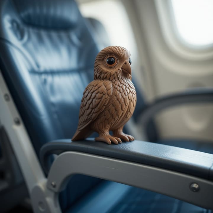 Another hour crawled by, punctuated by increasingly frustrated PA announcements. Her phone battery was dwindling, her audio book felt flat, and the thought of another overpriced airport pretzel was repulsive. Desperate for a change of scenery, she decided to brave the charging stations near the next gate. As she stood to leave, she noticed a small, intricately carved wooden bird perched on the armrest of the seat next to the man. It was exquisite, with feathers so finely etched they seemed real, its tiny eyes glinting with a lifelike spark.
