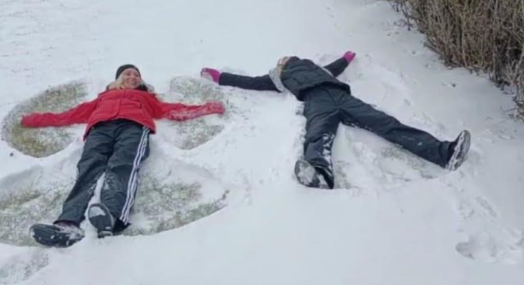 “You’re the prettiest snow angel I’ve ever seen,” he whispered, and as they both laughed, warmth flooded their hearts despite the cold surrounding them.