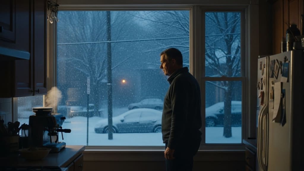 Frank stood in the kitchen's shadowed glow, the old refrigerator hum a dull counterpoint to the quiet outside. Three AM. The world was going white. He hadn’t meant to wake, but the sheer lack of sound had pulled him from a restless sleep. No wind, no cars on the street, just the soft, insistent pressure of falling snow. It piled on the sill, a thick, clean blanket over the gritty urban landscape he usually saw. He watched it for a long minute, a slow swirl, like sugar being poured from a height.