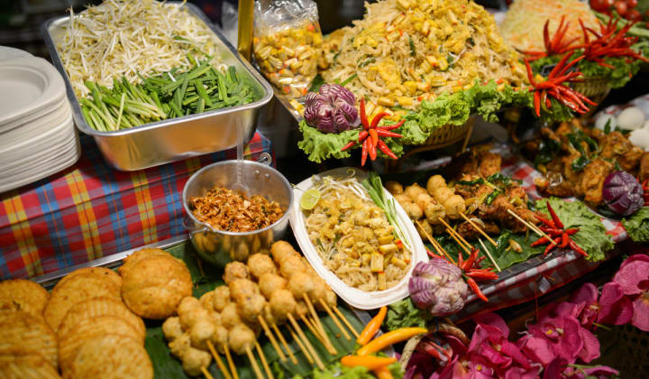 Pad Thai: Pad Thai is a stir-fried noodle dish made with rice noodles, shrimp, tofu, eggs, bean sprouts, and a sweet and tangy sauce made with tamarind, fish sauce, and palm sugar. It is a popular street food in Thailand and can be found at many Thai restaurants around the world.
