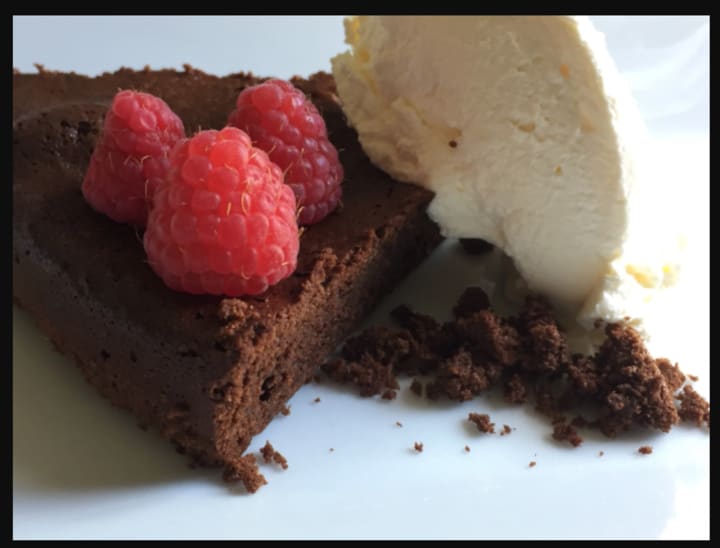 Bake for 40-45 minutes or until the sides are set and the very centre, on top, still looks slightly damp. A cocktail stick should come out mostly clean but with a few sticky chocolate crumbs on it.