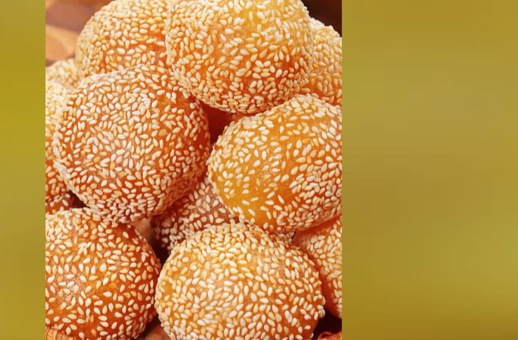 Roll balls → coat in sesame seeds → fry at 325°F (160°C) until puffed.