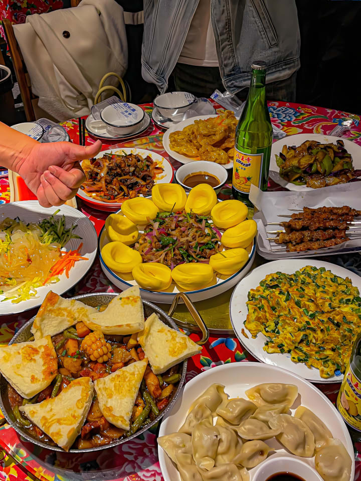 Just like this, we ate about a dozen plates of dishes. There were braised pork, deep - fried and stir - fried pork cubes, scrambled eggs with wood ear and shredded pork, stir - fried pork slices, braised spareribs, stir - fried pig intestines, and so on.