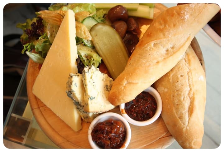 For one thing, it is not always cheese that is offered. You may well have a choice of pâté, ham, beef or tuna, as well as cheddar, stilton or brie when it comes to the cheese. The bread is likely to be a crusty piece of French stick (with butter), and there will probably be salad and pickles, maybe even an apple and/or grapes.