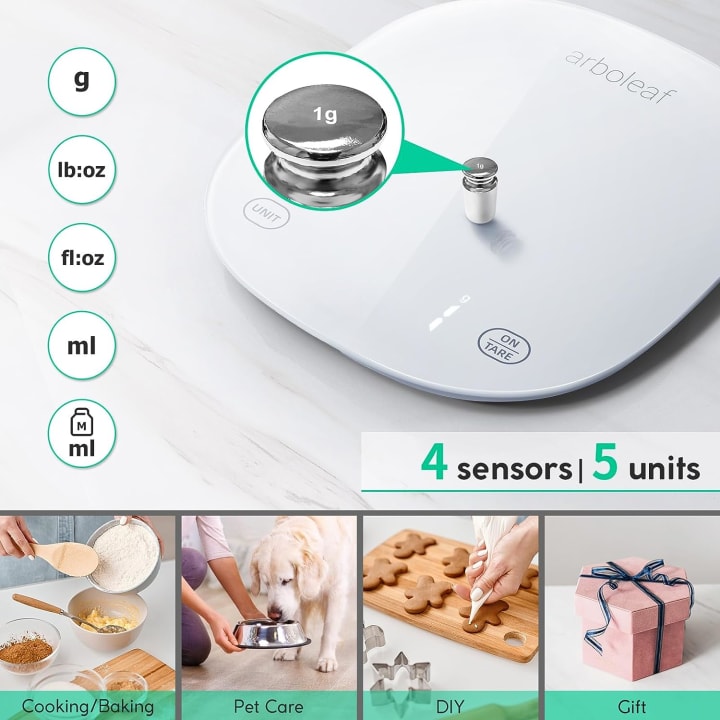 * Precision in Every Gram: The scale's advanced sensor technology ensures precise measurements in both grams and ounces, allowing you to follow recipes and portion ingredients with unparalleled accuracy.