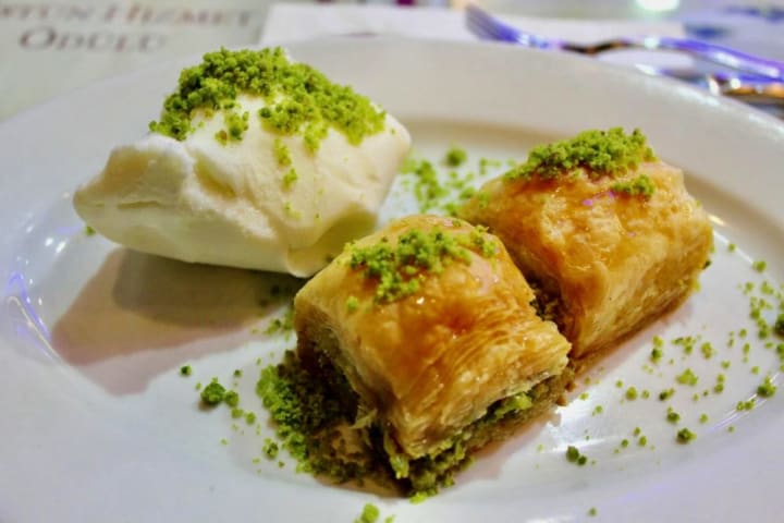 The menu consists of appetizers such as humus, salads, soups and kofta kebabs; main courses such as grilled meats and rice dishes; and desserts such as baklava and ice cream.