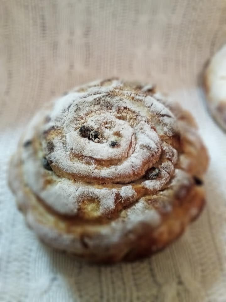 actually, our sourdough cinnamon raisin bread scored to look like a giant