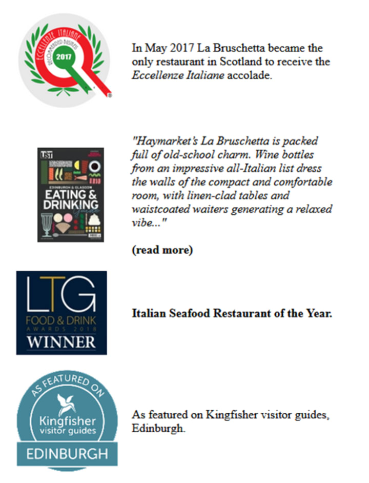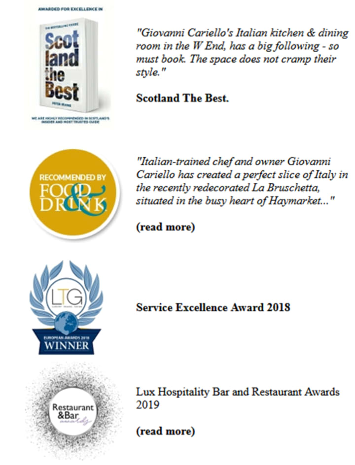 La Bruschetta is a small luxurious Italian restaurant in the centre of Scotland’s capital city – Edinburgh. A family-run business, La Bruschetta has been in the hearts of many Edinburgh locals and foreign travellers for the past nineteen years. The physical size of the premises doesn’t curtail the great community and family that they have built over the years with their five star one of a kind Menu A La Carte and warm welcoming staff.