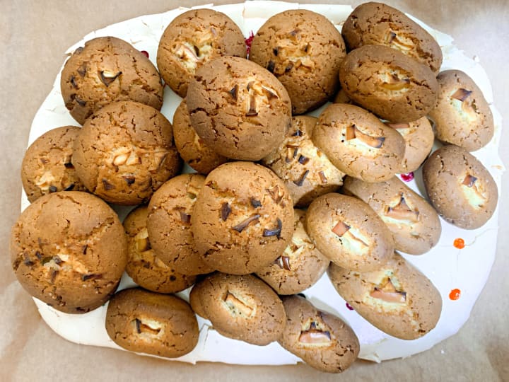 I love gingerbread and I love big, puffy cookies. It is a brilliant combination because the puffiness makes for a brilliant texture, especially if you only want to eat one cookie and convince yourself you're being healthy. Another reason these are great is because you can put fruit in them left right and centre and by fruit, because it is a ginger cookie, I mean apples.